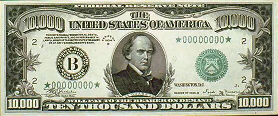 1万,Salmon P. Chase,非总统,林肯时期的财政部长及首席大法官。