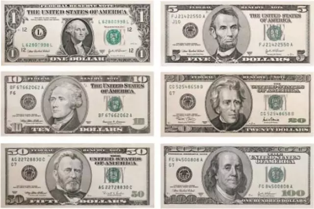 哥们在两块上!由于现在市面流通的2元太少,是存在感比较低,但是按照发行时的设定,是排在林肯之前的。就是不知道是不是得罪了画师,别的总统都气场十足不怒自威,再看杰斐逊这小眼神儿,拿出来鄙视别人杠杠给力。顺带一提,硬币最大的也不是一块,还有50和100的,不过主要作为收藏用。