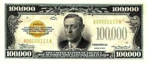 不过事情还是有转机,如果我们把时间倒转回1860s到1960s之间,美国是有更大面额纸币流通的。最后一次大面额纸币发行是在1944年,到1969年停用。停用的主要原因其一是在60年代末期大额资金流动主要靠支票来完成,就像现在一样,支票比大量纸币使用起来更方便;其二是因为大面额的现钞一定程度上为犯罪行为提供了便利,想象现在100万美元要一百捆装一整箱,在1万美元存在的年代它就是不薄不厚的一踏,揣兜里就走;其三是大面额的纸币应用率已经比较低,但同时却有很高的保存风险。