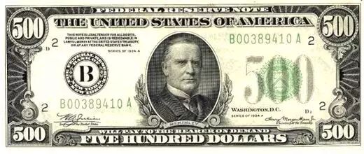 500块,上面是William McKinley第25任总统。