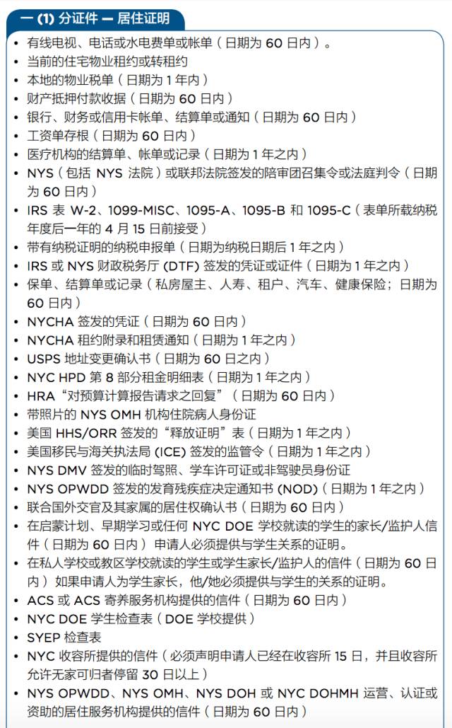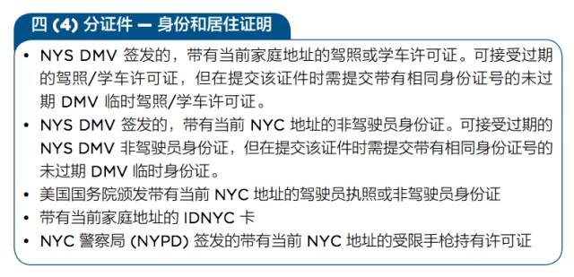 1. 至少是 4 分证件,其中至少 3 分证明身份,至少 1 分证明居住在纽约市。