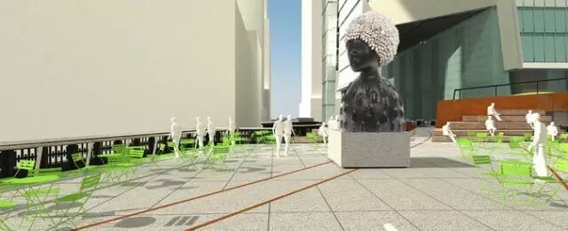 于去年开始,关于柱基上摆放的艺术品的规划征集已悄然进行着,也收到了超过50位艺术家提交的方案,筛选作品的委员会是由各地著名艺术家和艺术馆馆长组成,其中包括纽约、洛杉矶和迈阿密的现代艺术博物馆的馆长。他们最后筛选出了一份12人的短名单,入选的设计人包括洛杉矶艺术家Charles Gaines,纽约雕塑家Haim Steinbach,芝加哥艺术家Simone Leigh,纽约作曲家Jonathan Berger等人。其中,Simone Leigh的方案是一座12英尺高的黑人妇女雕塑,Jonathan Berger的方案则是一座钟型机器。