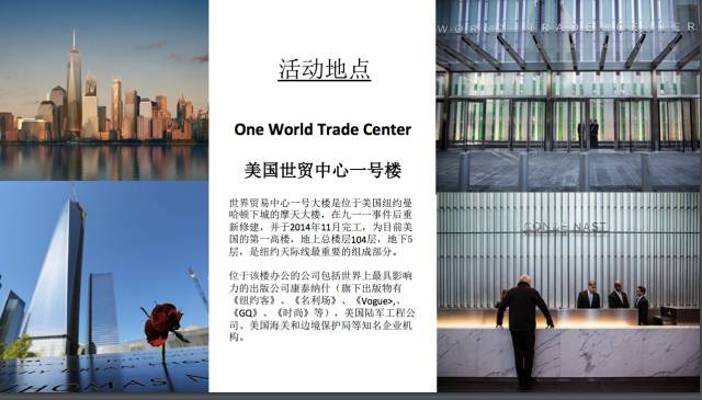 活动地点是在大家都知道的逼格的世贸中心63层。目前为美国与纽约第一高楼、以及世界第七高楼。而 WG EMPIRE是世贸大厦史上第一次赞助商业公司举办开幕式,场地坐拥一整层楼,360度环绕看曼哈顿,hudson river,自由女神像等等全景。随便你穿着美丽的晚礼服装b拍照。就这样!