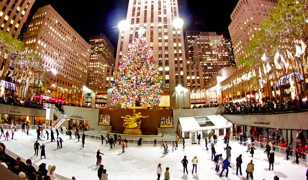 冬天,这里就变成了冰场和圣诞节的庆祝胜地,每年都会有超大圣诞树在冰池后边的70层主楼前点亮。