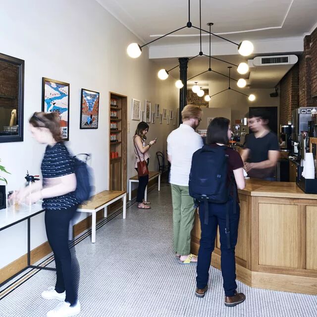 Gimme!Coffee在Nolita有一家店,另外两家都在Williamsburg,并以其少量但精致的咖啡豆和醇香的浓缩闻名。