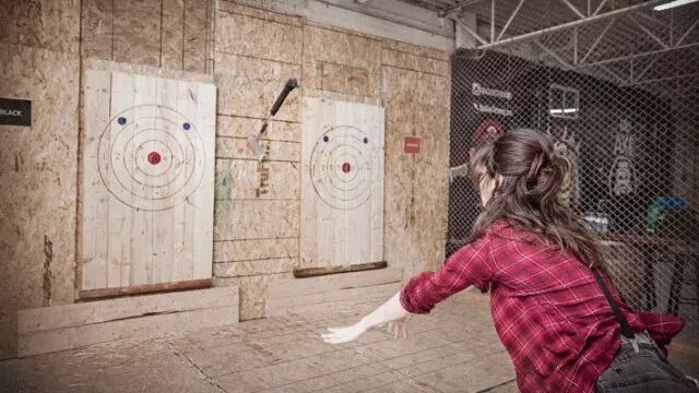 听过扔纸,扔硬币,扔球,扔钱的,但是小编我是真没听过有扔斧子减压的。室内扔,室外扔,只要不伤到人,你想怎么扔就怎么扔。听起来比扔保龄球过瘾啊!一不小心斧子头没钉在靶子上,而是把儿撞上去了,那岂不是比把保龄球扔到球道外面还要尴尬。