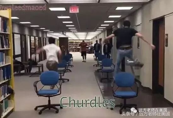 还有这用转椅当跨栏的,你们真的不怕踩着带轮子的椅子飞出去吗?看这矫健的身影,和身后留下一排排整齐的跨栏椅,刘翔都能给你们鼓个掌呢!