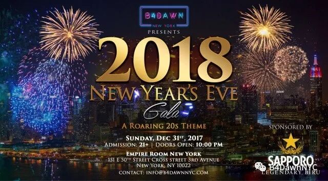 B4DawnNYC独家呈现曼哈顿唯一跨年大型主题派对!