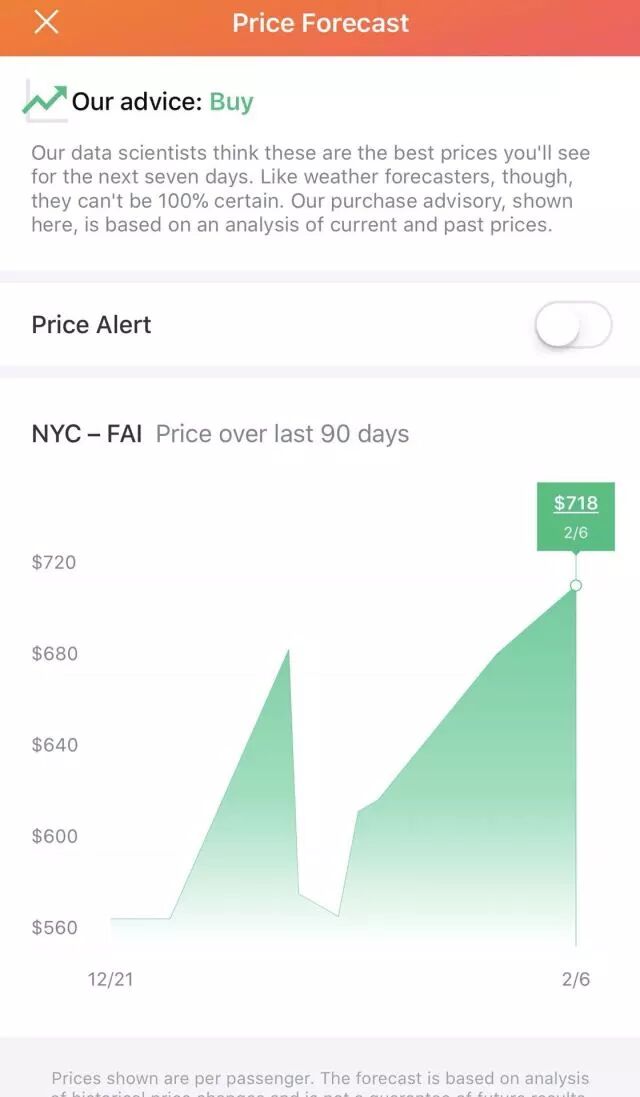 另外Kayak还会自动进行价格预测
