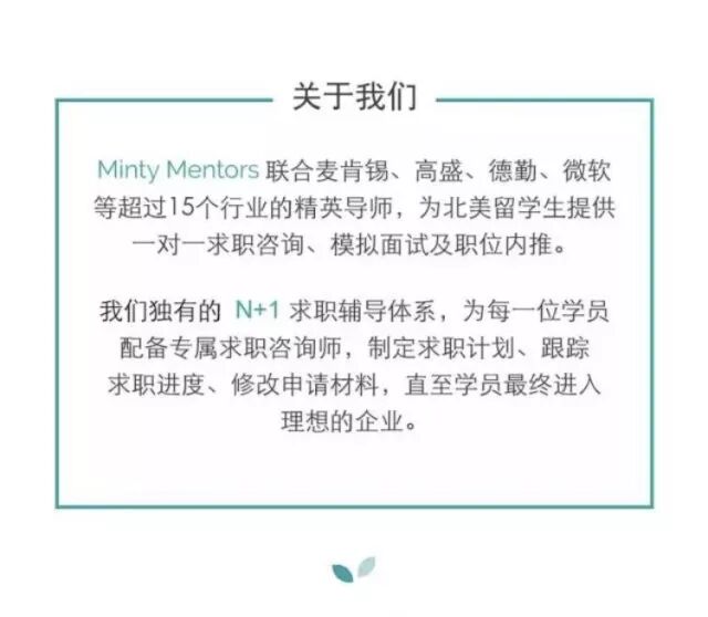 为了让大家有个更充实的Summer,经过Minty多次争取,公司又额外开放六个职位!独家限额职位放送,实习结束后表现优秀的学员有机会拿到导师名企的有效内推,并保证一次面试!