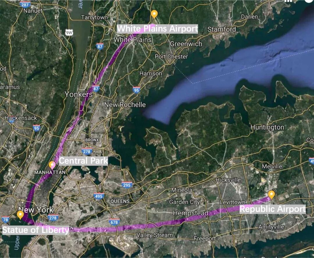 此次飞行的航线将从Republic Airport出发,