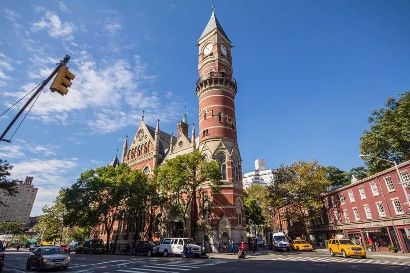 这个位于格林威治村的威尼斯式的歌德建筑图书馆建于1874至1877年间,原先是第三司法区法院。它以“第三司法区法院”的名字在1972年列入国家史迹名录,1977年被列为国家历史地标。1958年这个建筑被计划拆迁,公众强烈抗议,在1967年被转换为公共图书馆,得以保存。在这个图书馆,你可以登上149级台阶后,爬上图书馆塔顶端,看到360度格林威治村的全景。