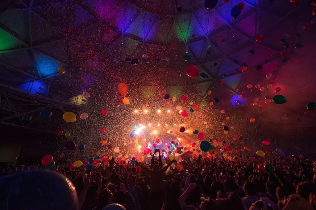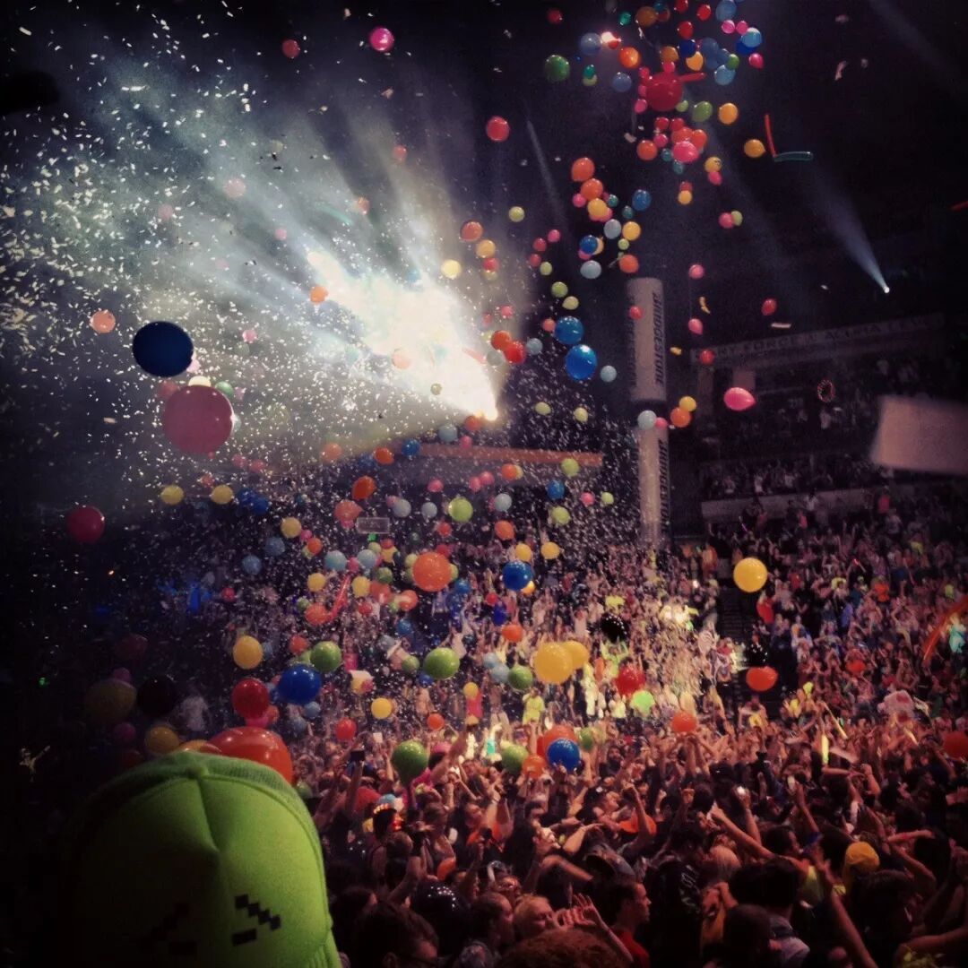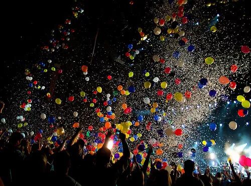 在满天飘洒的纸片礼花中热舞?