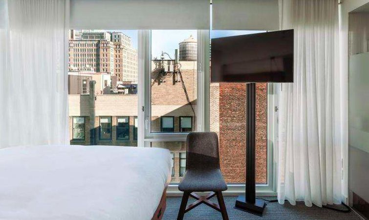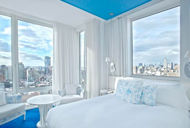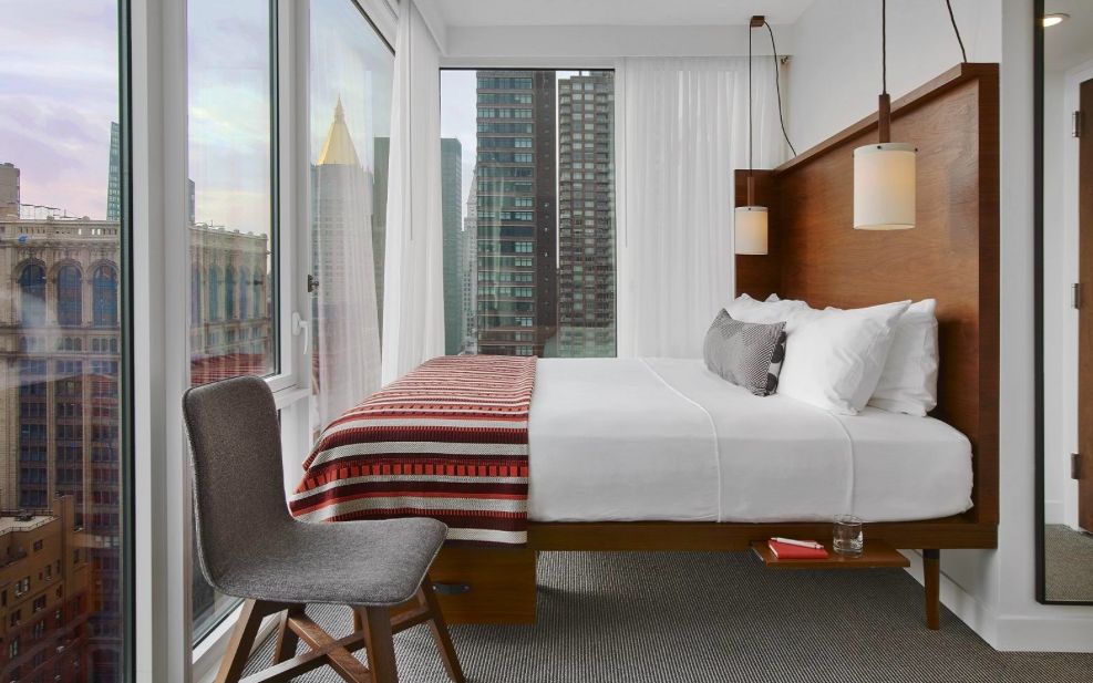 在Insta最火爆的网红酒店,落地窗城市全景,白天的采光很赞。虽然酒店房间结构偏小,但地理位置方便。睡醒后一睁开眼就可以看到迷人的曼哈顿景色和帝国大厦,是一件多么幸福的事儿,而且楼顶还有一个很赞的rooftop bar!