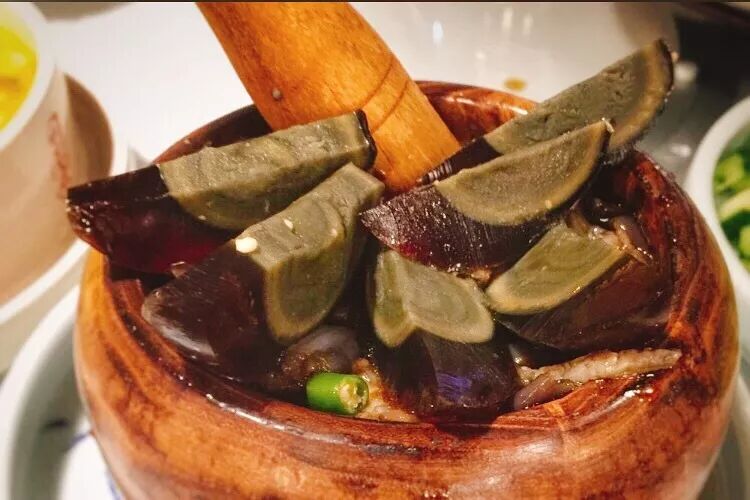 这道菜从摆盘来看就十分有意思。茄子和切成辣椒圈的虎皮海椒,一起放入捣蒜的容器里。老板介绍说,吃这道菜需要客人自己捣,将蒸得软烂的茄子和辣椒、调料完美地搅碎融合。现捣碎的辣椒会比机器搅拌成酱汁更好,略带颗粒的口感配合顺滑的茄子,吃着这道菜,我能来三碗米饭!